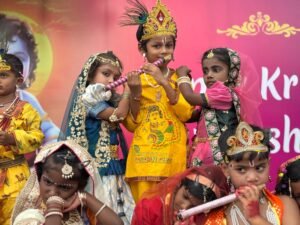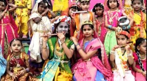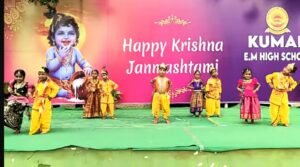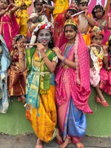 Kumar School celebrated Sri Krishna Janmashtami with great devotion and enthusiasm. The students dressed up as little Krishna and Radha, adding charm to the celebration. Cultural programs, devotional songs, and dances depicting scenes from Krishna’s life were performed by the children. The highlight of the day was the Dahi Handi event, where students formed groups and tried to break the pot, symbolizing Lord Krishna’s playful nature. Teachers and parents also participated, making the event joyful and memorable.